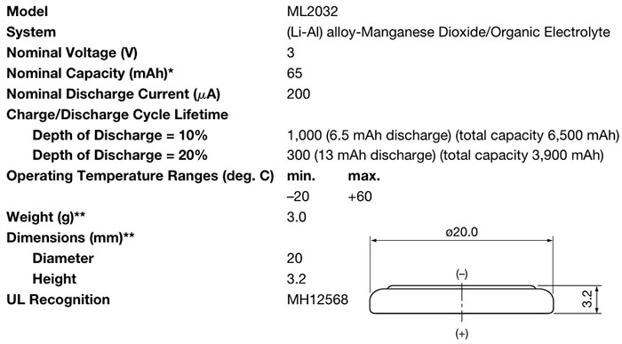 ¡á Lithium Manganese Dioxide Rechargeable Battery (¸®Æ¬ ÀÌ»êȸÁ°£ ÃæÀü¹èÅ͸®)