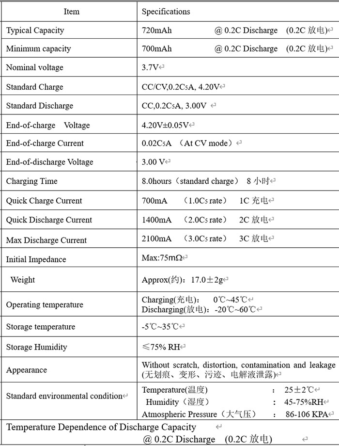¡Þ Typical Capacity : 720mAh (0.2C Discharge)