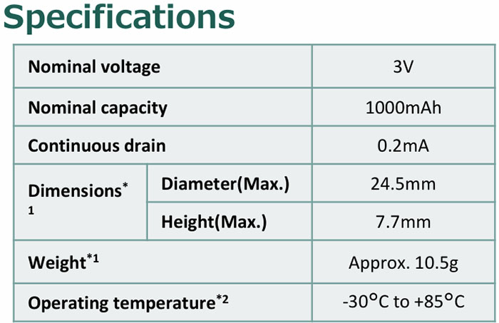 ¡Þ Nominal Voltage : 3V