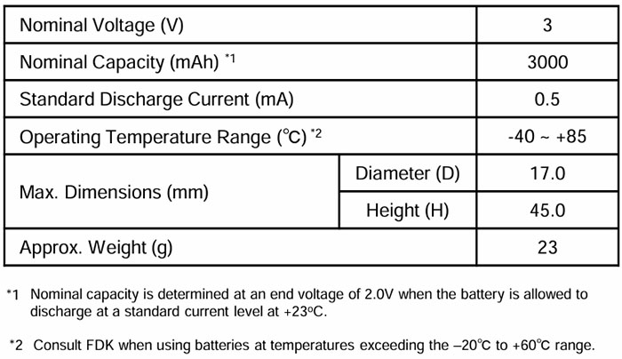 ¡Þ Nominal Voltage : 3V