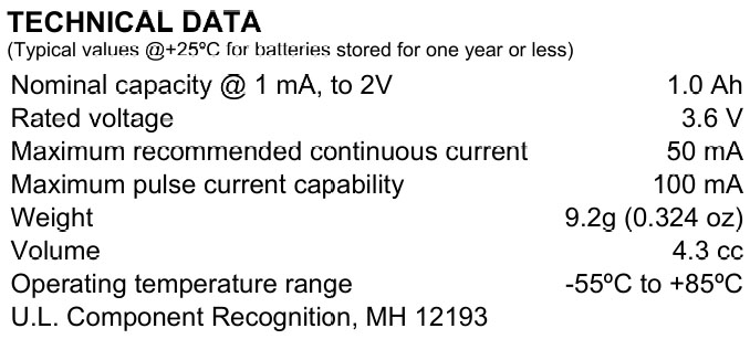 ¡Þ Nominal Capacity : 1Ah (1000mAh) @ 1mA, to 2V